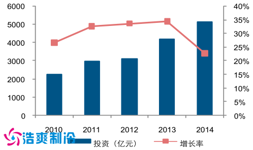 從物流費用的構成來看,2014 年盡管交通運輸費用占到物流總費用的 50%以上,但是與倉儲行業(yè)相關的保管費用和管理費用比例占到物流總費用的 47%, 將近一半; 從固定資產(chǎn)的投資來看,物流業(yè)在倉儲行業(yè)上的固定資產(chǎn)投資額逐年增加,2014 年達到 5159億元,雖然 2014 年投資增長率有所下降,但是也可以達 22.8%,處于較高水平。